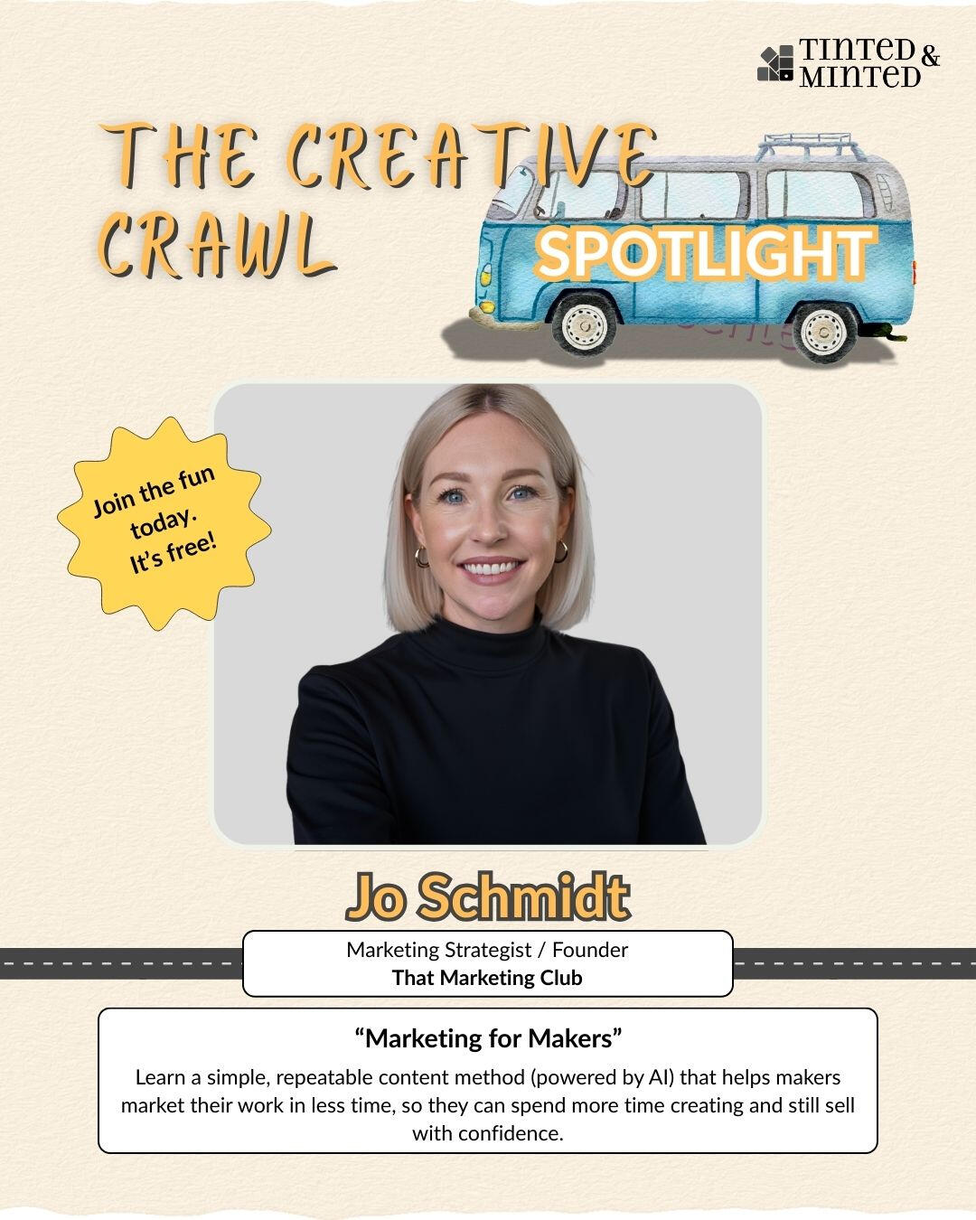 The Creative Crawl is a playful, self-paced 7-day event for artists, makers, and creatives of all kinds. Each day, you’ll enter a new ‘room’ inside The Minted Makers Co-op, unlock a spark of inspiration, and leave with fresh energy for your own creative practice.